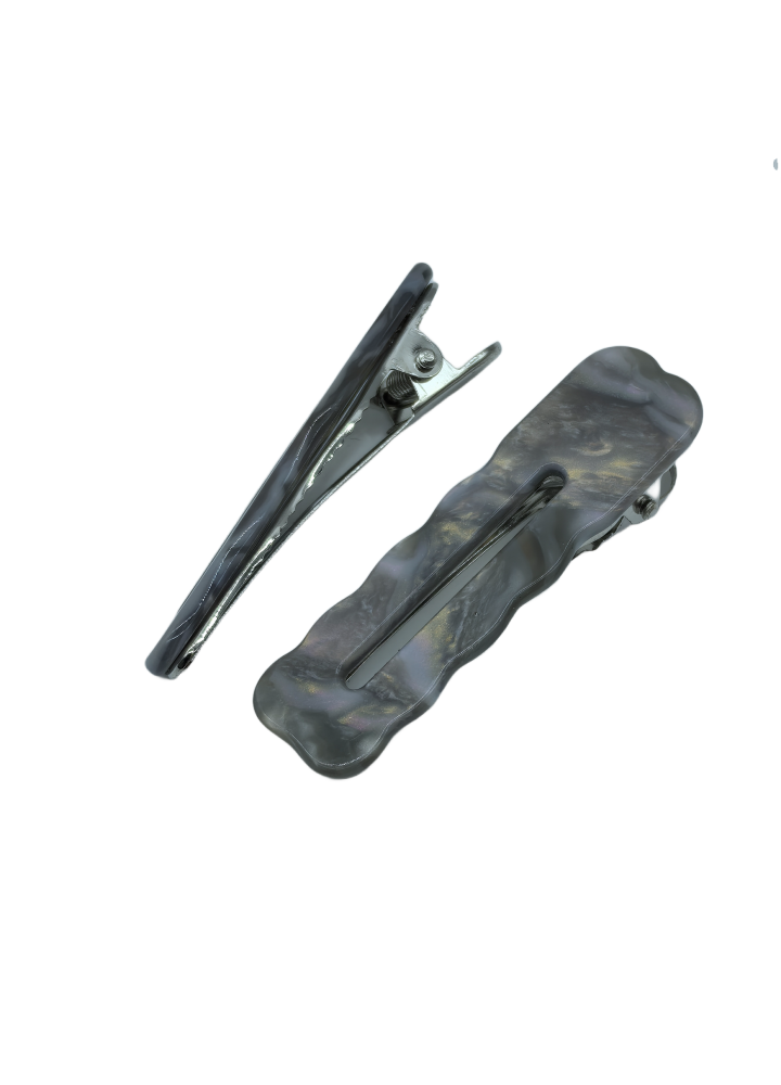 2 Pcs Marble Pattern Acetate Hair Clips For Women Non-slip Duckbill Metal Barrettes Elegant Hair Accessories