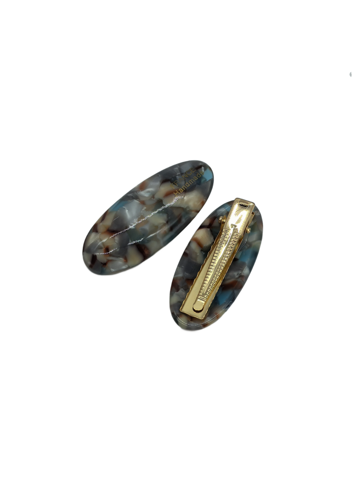 2 Pcs Oval Acetate Hair Clips For Women Marble Pattern Duckbill Metal Barrettes Elegant Hair Accessories