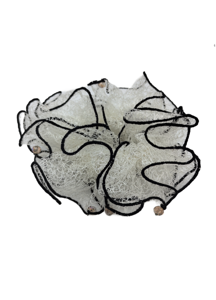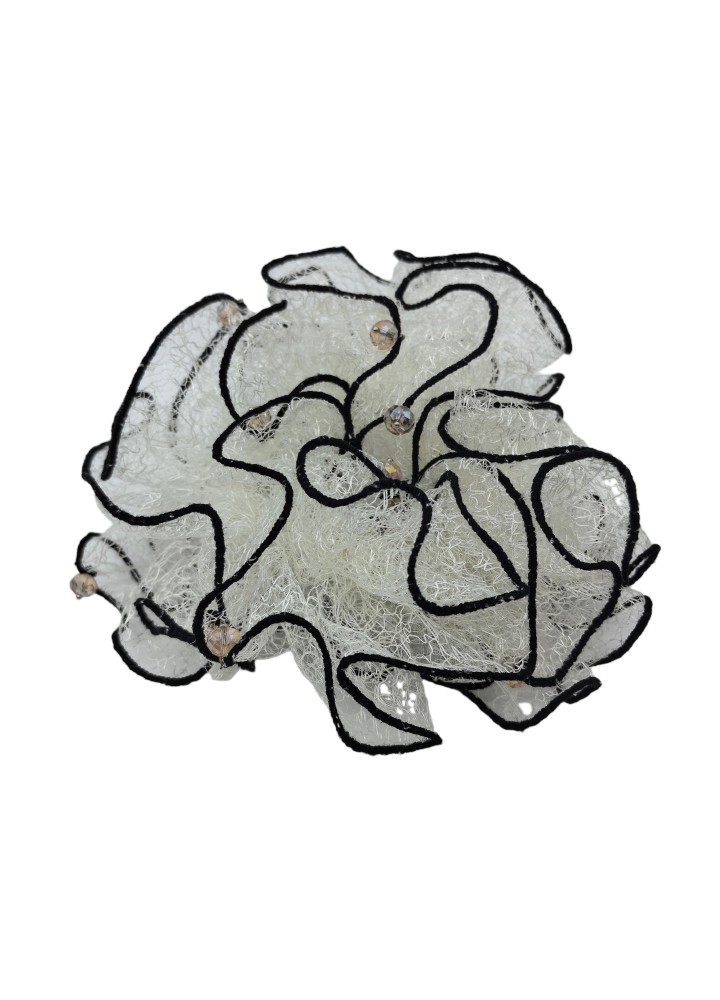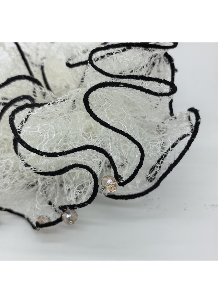 White Lace Scrunchies For Women Large Elastic Hair Ties Ropes Black-rimmed Hair Ties Ponytail Holder