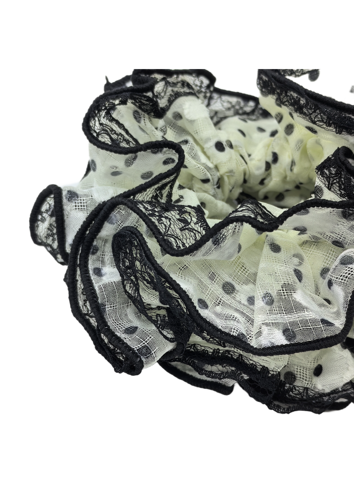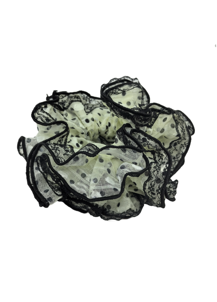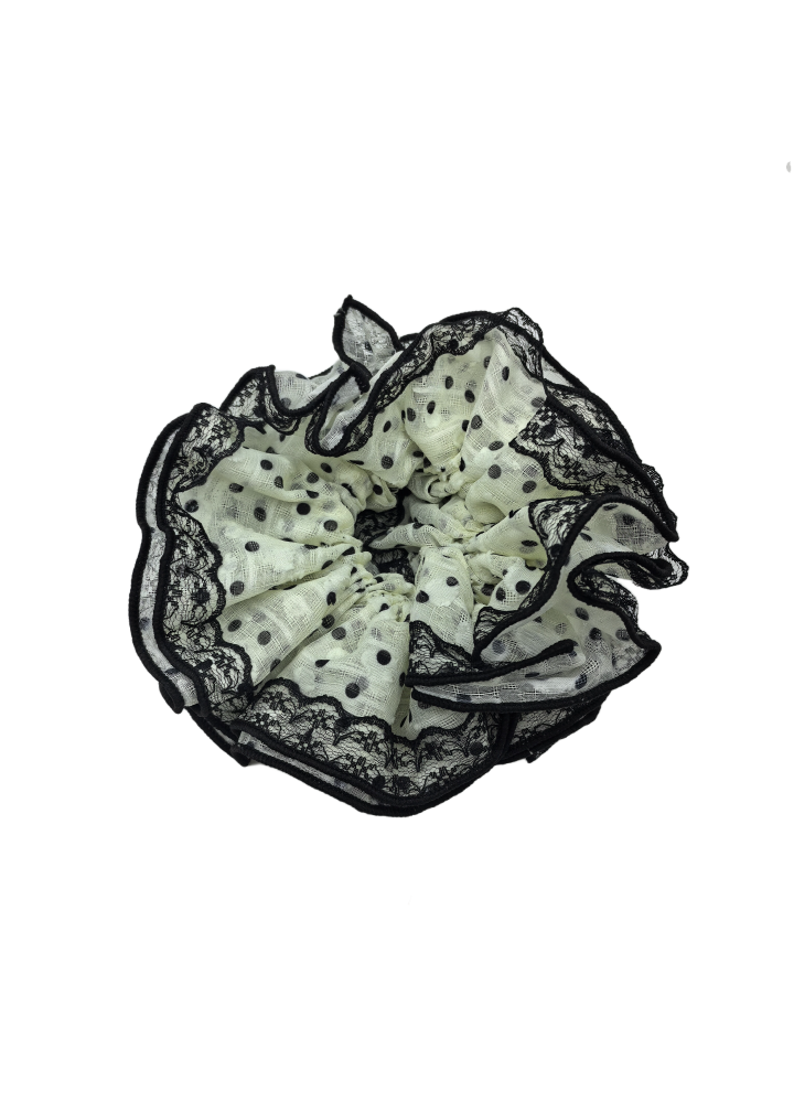 Black Lace Scrunchies For Women Large Elastic Hair Ties Ropes Black Polka Dot Hair Ties Ponytail Holder