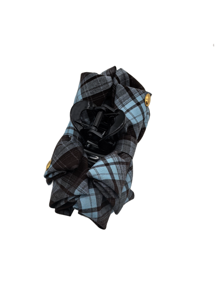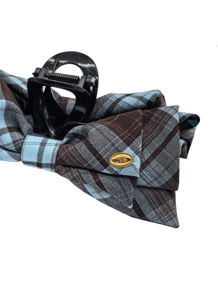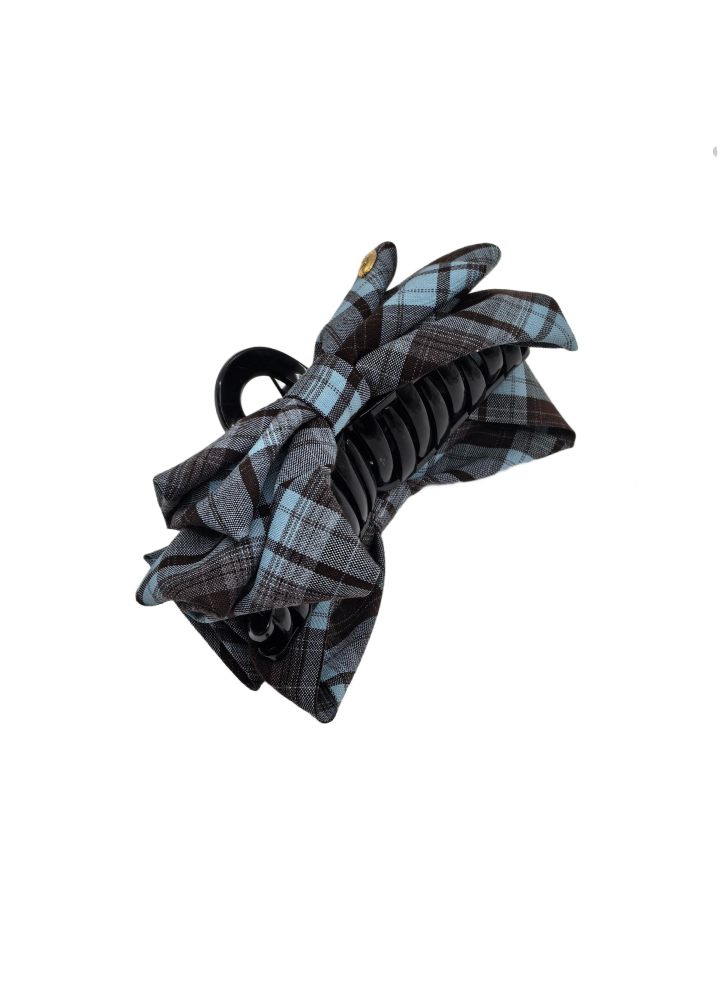 Fabric Bow Hair Claw Clips Blue Plastic Ponytail Holder Clips With Bowknot On Both Side